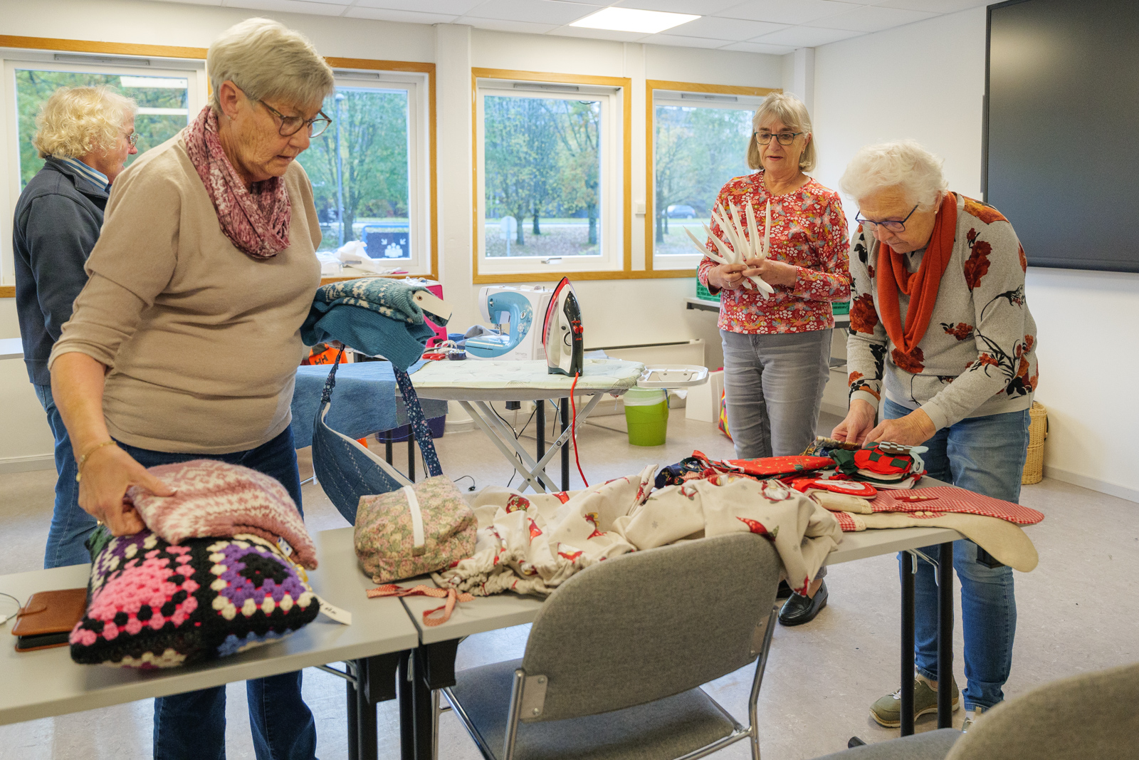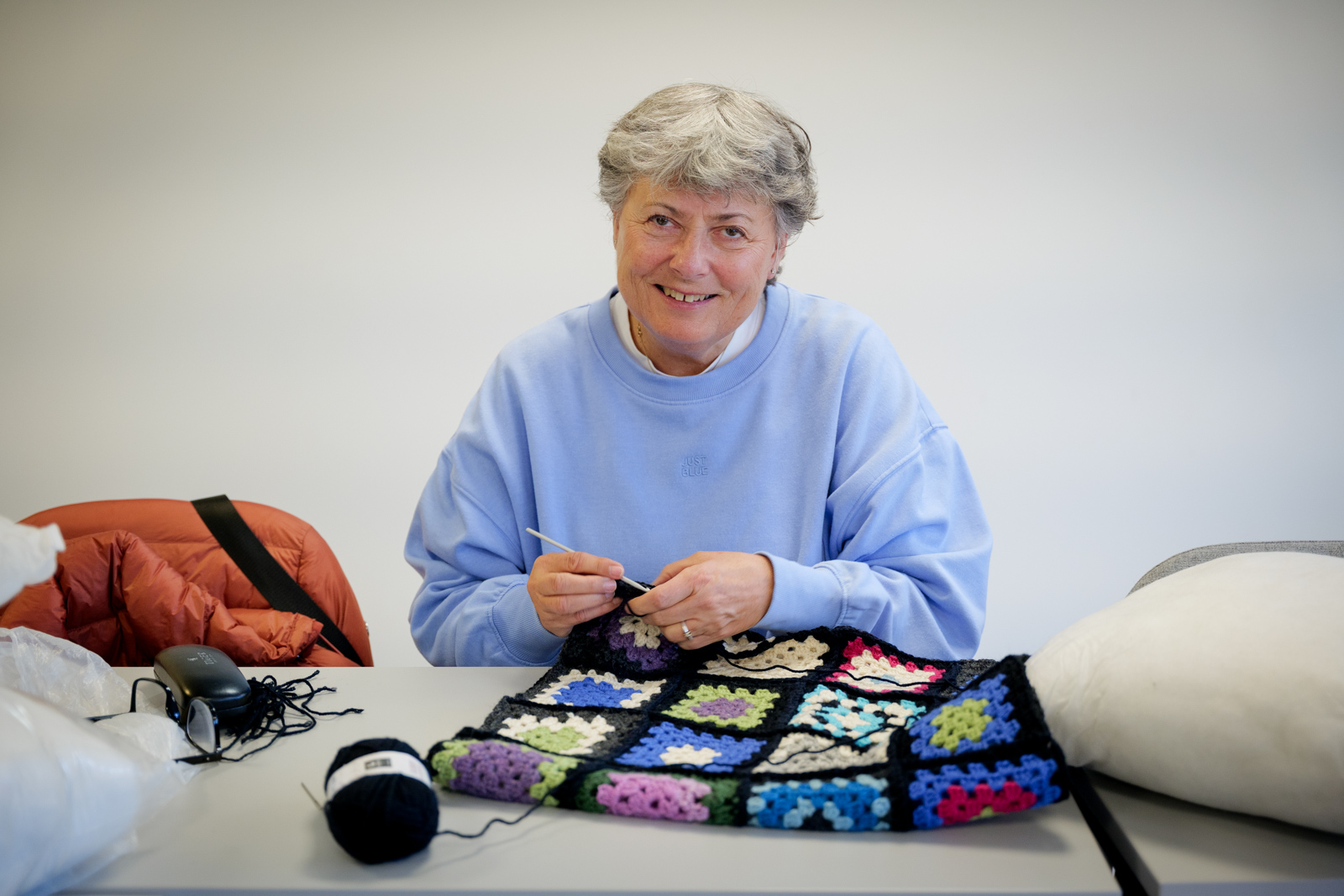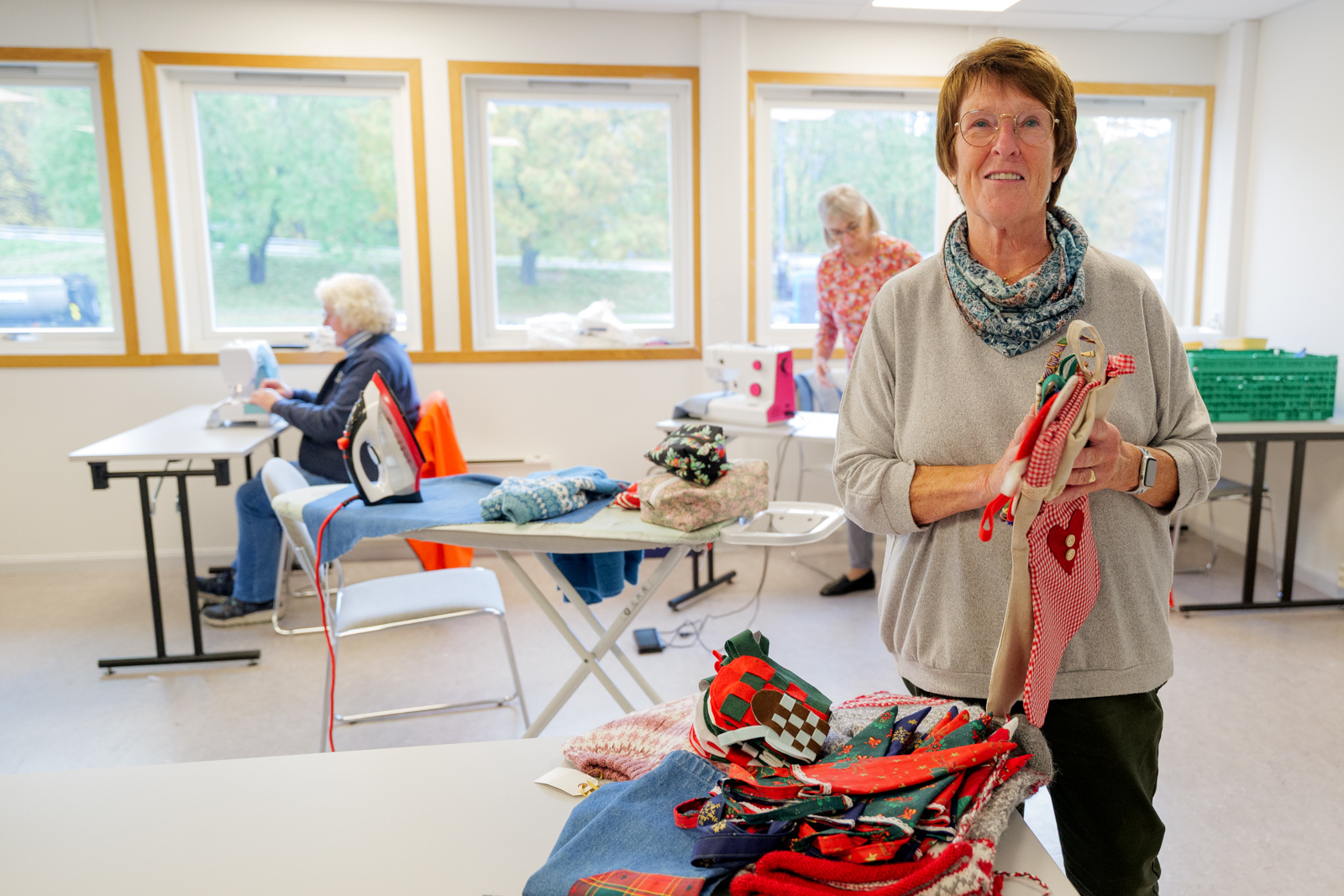 – Her syr og strikker vi, og vi har et stort fokus på gjenbruk. Vi dyrker hobbyen vår, samtidig håper vi at det vi gjør er med på å gjøre en forskjell. Det er meningsfylt å være med på når vi vet at det går til virksomhetene i Blå Kors. Det er jo også et utømmelig behov, forteller Sidsel Gjermundsen (76).